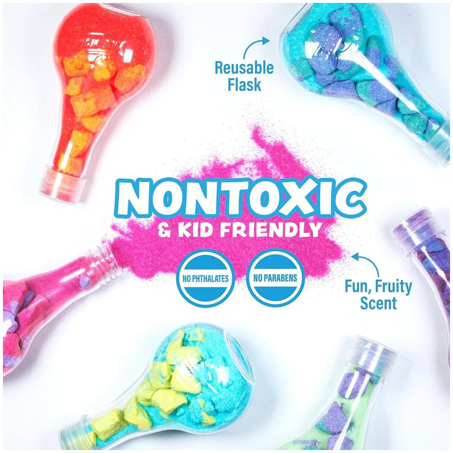 * FUN IN THE TUB: Transform your kids bath into a scientific adventure with Bath Bomb Potions! Watch these bath potions for kids erupt with colorful streams of bubbly foam as they react with water. * FIZZY, FOAMY, BUBBLY ERUPTION: Just add water & watch as the kids bath bombs potion fizzes, foams & bubbles! Lil' Scientists will love watching the bubbly eruption of swirling colors they've created! * NONTOXIC & KID-FRIENDLY: Our potion kid bath bombs are formulated with safe, nontoxic ingredients & are paraben and phthalate-free - perfect for a safe, yet bubbly explosion of colorful bath fun! * SIMPLE & SCIENTIFIC: Potions are easy to use!
